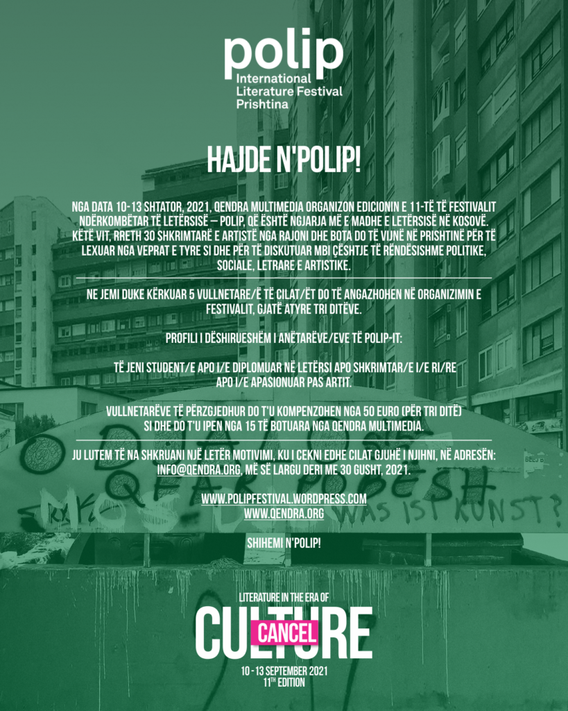 POLIP – FESTIVALI NDËRKOMBËTAR I LETËRSISË FILLON MË 10 SHTATOR